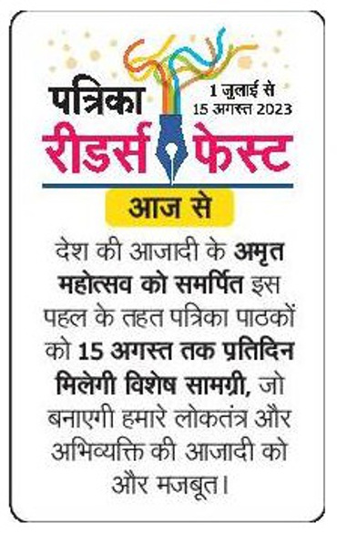 Dedicated to the Azadi Ke Amrit Mahotsav of the country, the readers of the PATRIKA are getting special content till August 15 under the Reader's Fest initiative. Under this, readers are getting to read such news, which are going to strengthen our democracy and freedom of expression.