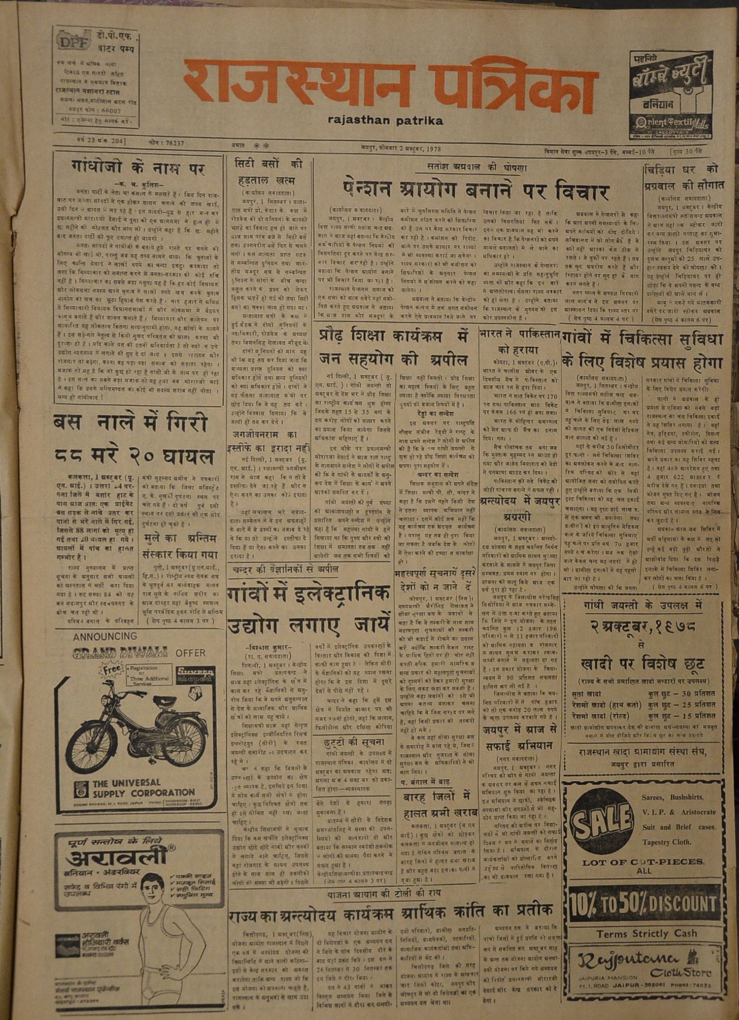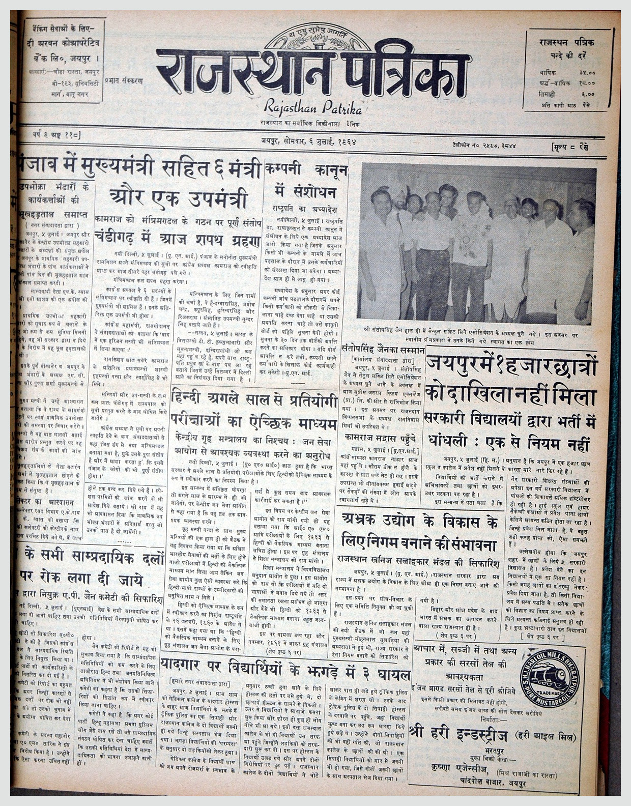 Similarly, the Central Government's campaign for the abolition of the Jagirdari system was given significant coverage, with a two-column space on the front page. This demonstrated how Rajasthan Patrika aligned itself with democratic values, standing for equality during a period when such ideals were gaining momentum in the country.