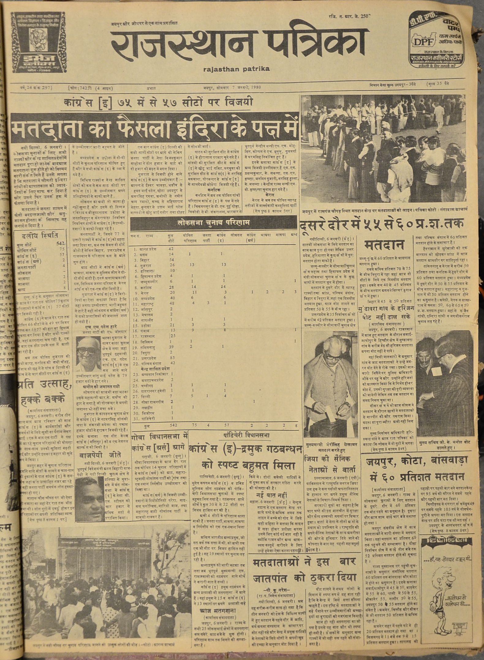 By 1962, during India’s general elections, the newspaper expanded to four pages. In its February 26, 1962 edition, Rajasthan Patrika accurately predicted that the Congress Party would secure only a nominal majority in Rajasthan, which proved true.