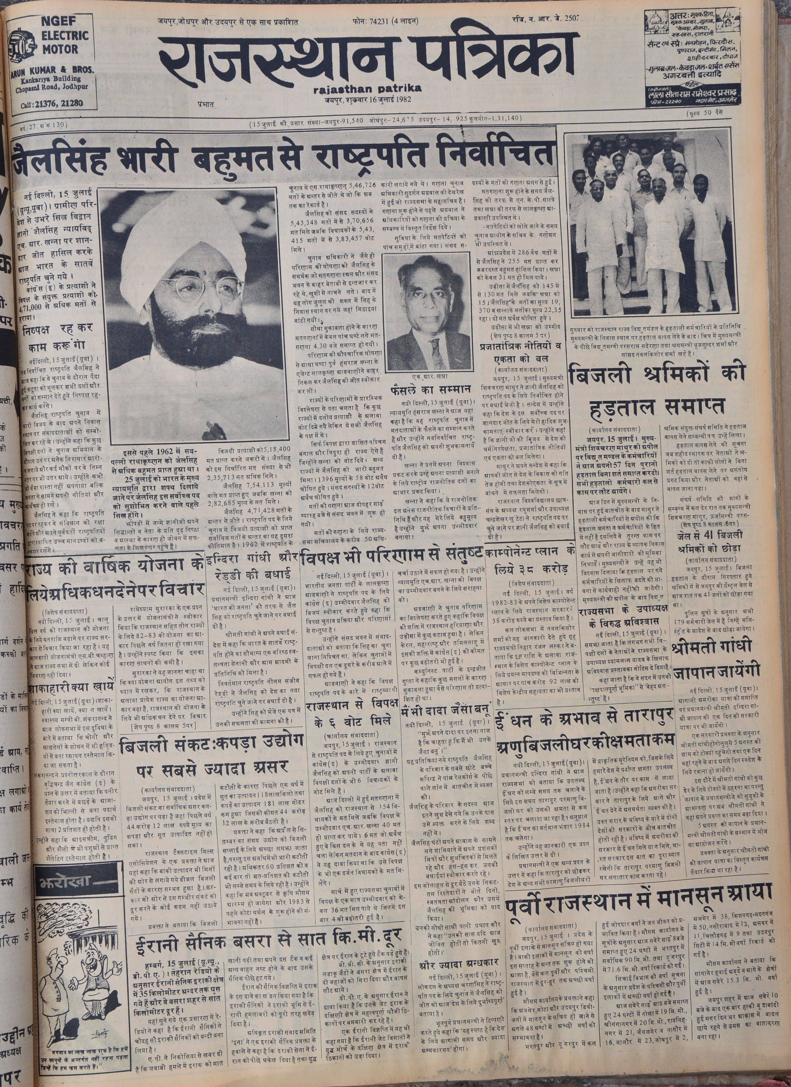 - For 1980, in February 1982, the then President Neelam Sanjiv Reddy awarded Rajasthan Patrika, Jodhpur and the Patrika's printer Rotary Printers at the 22nd National Ceremony for excellence in printing and artistry.