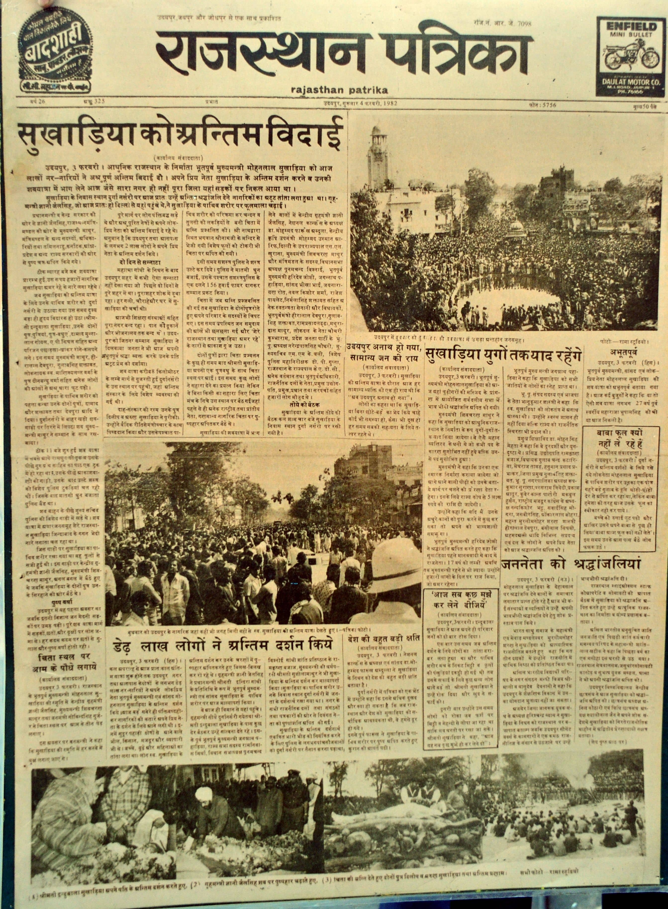 - Rajasthan Patrika (Jodhpur) was awarded the first prize as a printer on printing and decoration by the Ministry of Information and Broadcasting, Government of India for the year 1981.
