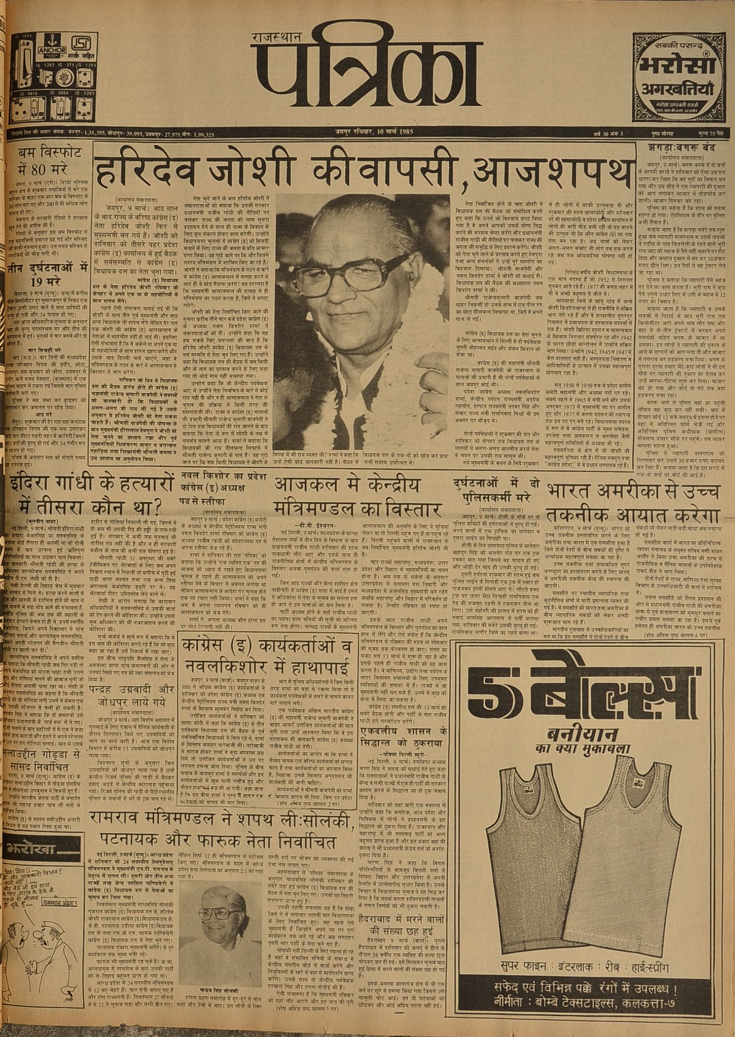 Journalism is often called the fourth pillar of democracy, and this principle was deeply ingrained in Rajasthan Patrika’s foundation. A glance at its earliest pages shows this value being upheld from the very first day. In a democracy, journalism stands as the voice of the people against power—or as a check to power. Rajasthan Patrika adhered to this ethos without compromising journalistic ethics.